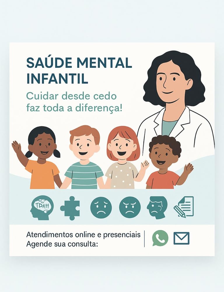Cuidar da saúde mental na infância é essencial para o desenvolvimento emocional, social e cognitivo da criança. Meus atendimentos em psiquiatria infantil são voltados para escutar, acolher e compreender as dificuldades que afetam o bem-estar da criança e de sua família, oferecendo um olhar sensível e técnico para cada caso.
